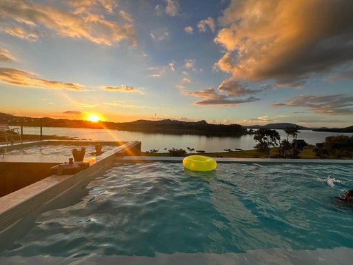 IMOVEL PÉ NA ÁGUA LOCALIZADO NO CONDOMÍNIO PORTO LARANJEIRAS - LOCAÇÃO OU VENDA Residência cinematográfica, com mais de 1.000Mts2, Pé na água às margens da Represa do Jaguari, na cidade de Piracaia DIFERENCIAIS: 7 Suítes onde pernoitam confortavelmente mais de 18 pessoas. 2 das suítes estão em plano térreo para pessoas Idosas ou com mobilidade limitada) Exclusiva Vista panorâmica da região, com “pôr do sol no seu quintal” 3 Salas de Estar (Sendo 1 Sala envidraçada, e outra, ampla sala com vista exclusiva para represa) 1 Sala de Snooker com Mesa Oficial, lareira, e anexa à área Gourmet. E MAIS: Garagem Coberta para 6 veículos Ampla Área para jogos e mesa de Ping Pong. Ampla cozinha com 2 fornos e 2 estruturas hidráulicas apartadas Quiosque com Bar molhado, decorado com Balcão iluminado em Onix, anexo à piscina Cascata com “Prainha” e Fire pit Espaço gourmet com churrasqueira, 3 portas de balcão refrigerado, Adega climatizada e Freezer para carnes. Piscina climatizada com mais de 75.000Mt3, e acesso “molhado à Sauna Ampla Jacuzzi Aquecida com vista Panorâmica Academia SPA, Com Sauna, duchas e lavabos exclusivos UNICO NA REGIÃO: Exclusivo Pub/Estúdio com isolamento acústico, Palco e sistema de iluminação. Píer privativo com Rampa náutica homologada pela Sabesp e acesso exclusivo Condomínio Possui: Quadra de tênis lisonda Quadra poliesportiva Campo de futebol Gramado Piscina Área social para eventos Mercadinho completo Academia Heliponto Garagem Náutica com serviço de embarque e desembarque