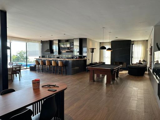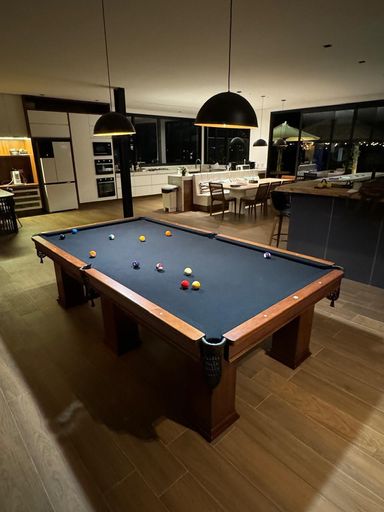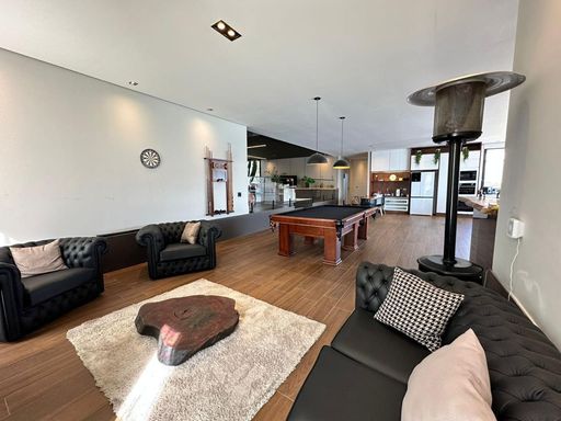 1 Sala de Snooker com Mesa Oficial, lareira, e anexa à área Gourmet.